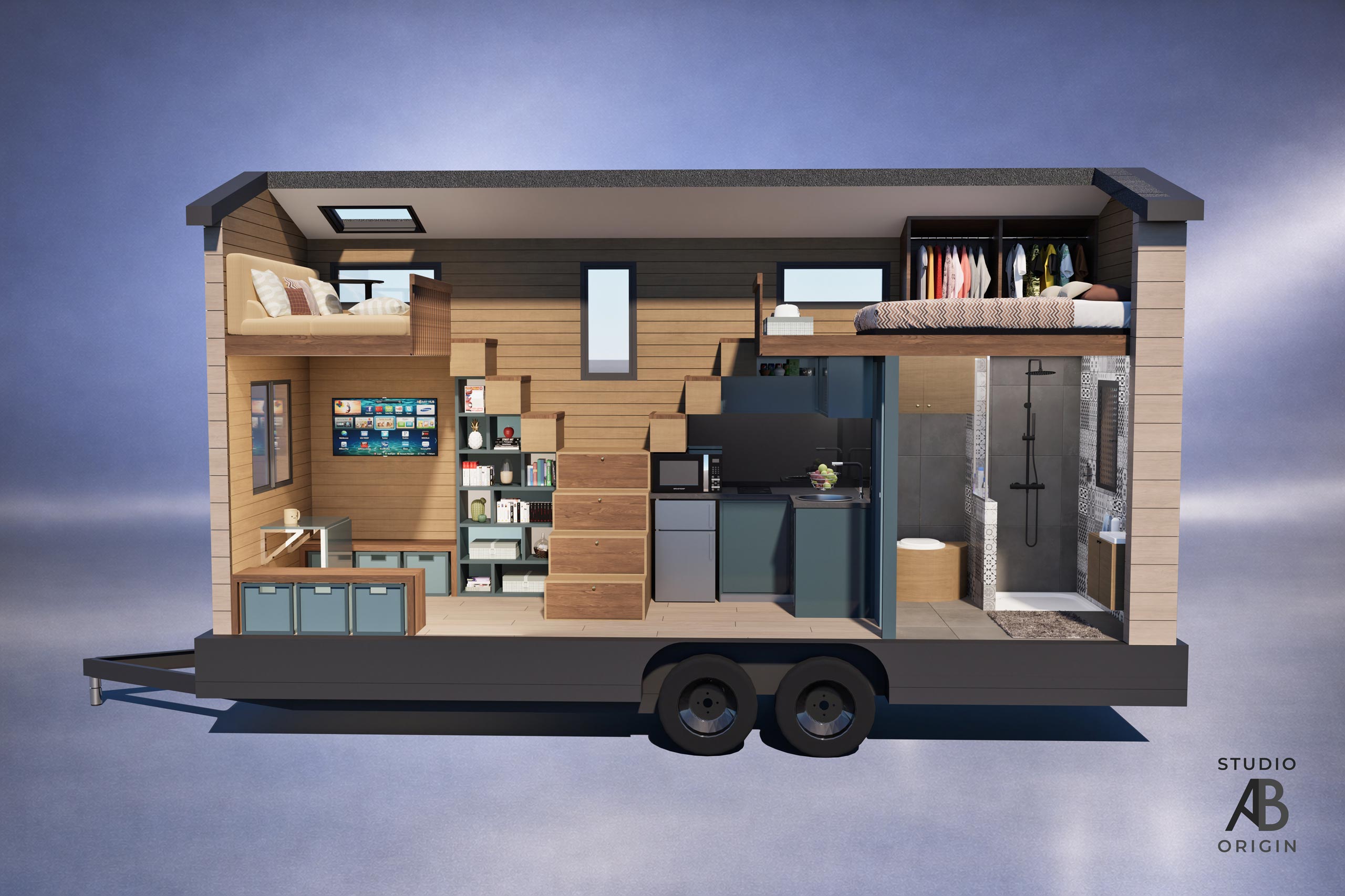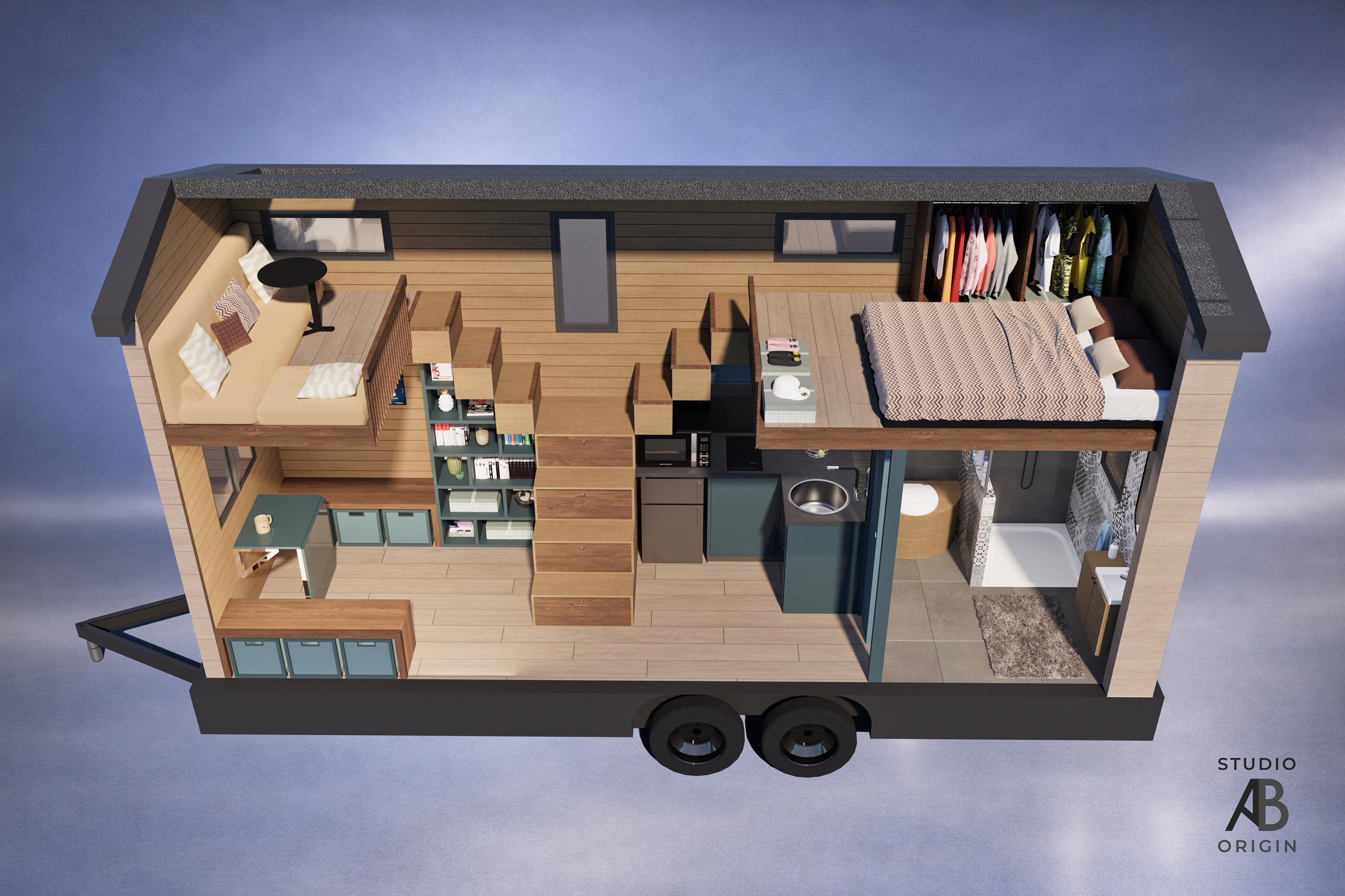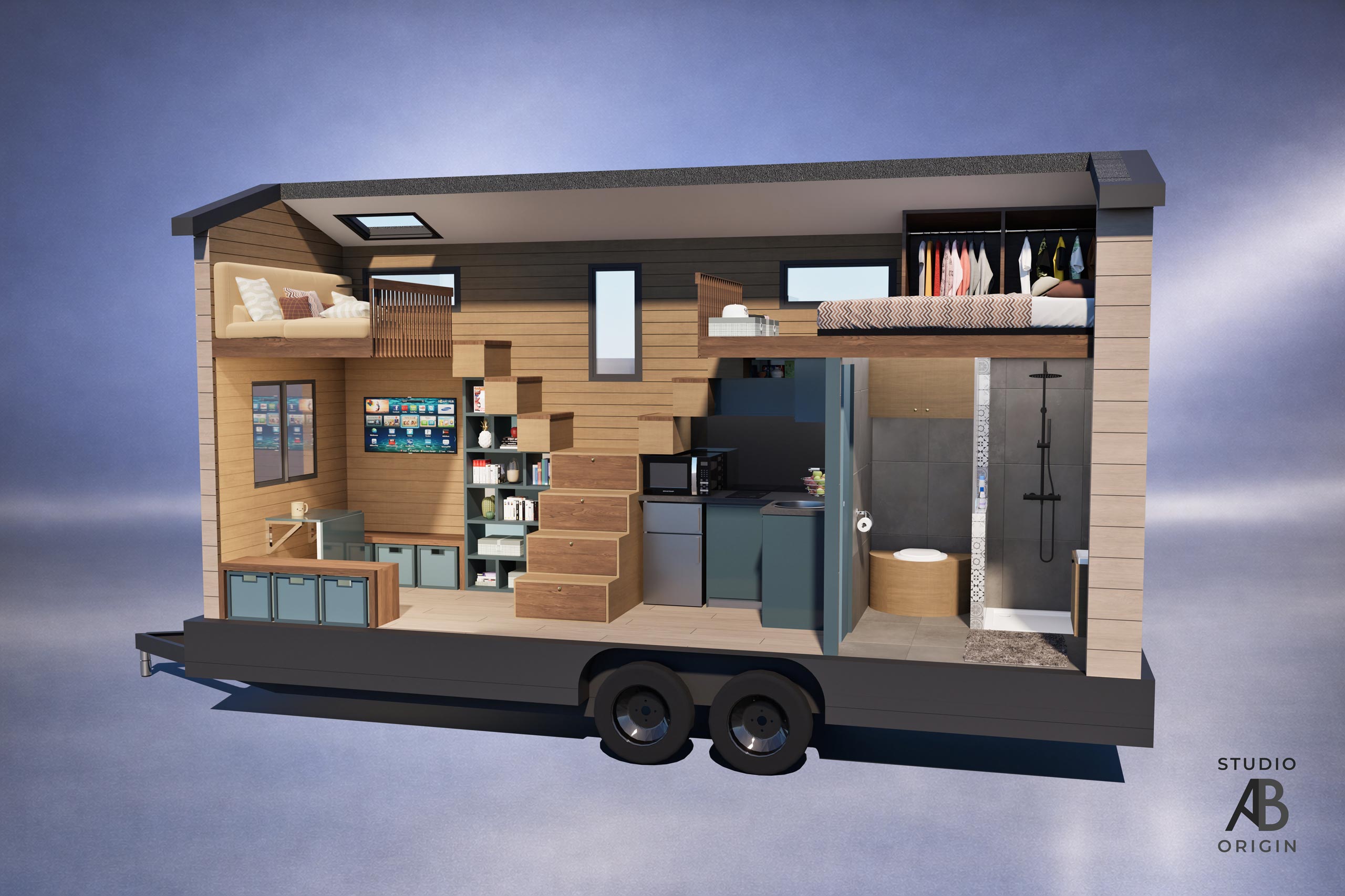Nos tiny houses sont conçues pour exploiter chaque mètre carré, avec une organisation optimisée, du mobilier intégré et des solutions esthétiques et techniques adaptées à un usage quotidien. Chaque espace est pensé pour être fonctionnel, confortable et durable, en intégrant les contraintes liées à l’espace dès la conception.